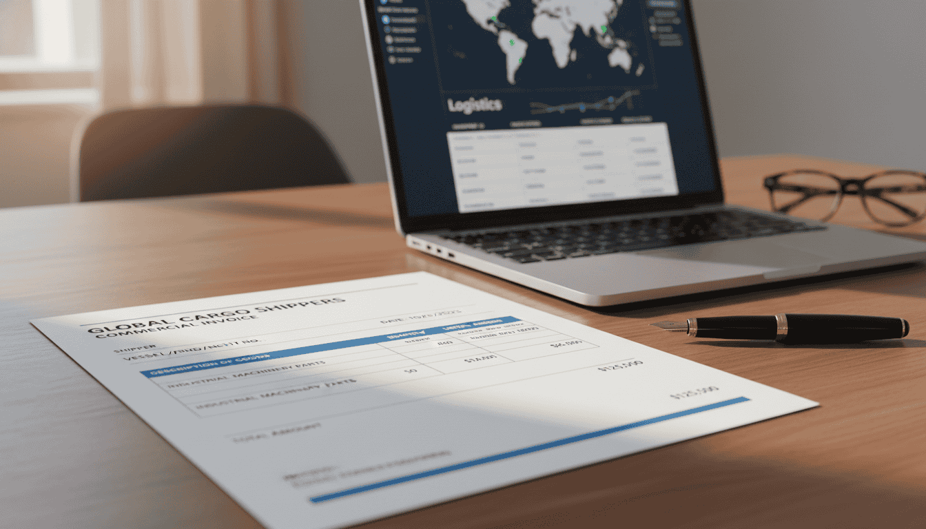 Hero Image: A container ship in the Persian Gulf at sunset, with calm waters and a distant horizon. Alternatively, a close-up of a freight invoice with a highlighted line showing "War Risk Surcharge USD 500" to illustrate the topic visually. The image should convey both the scale of maritime trade and the cost concern facing shippers.